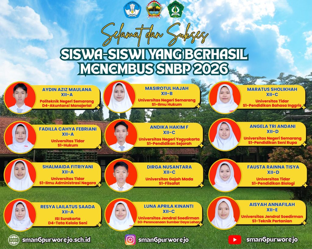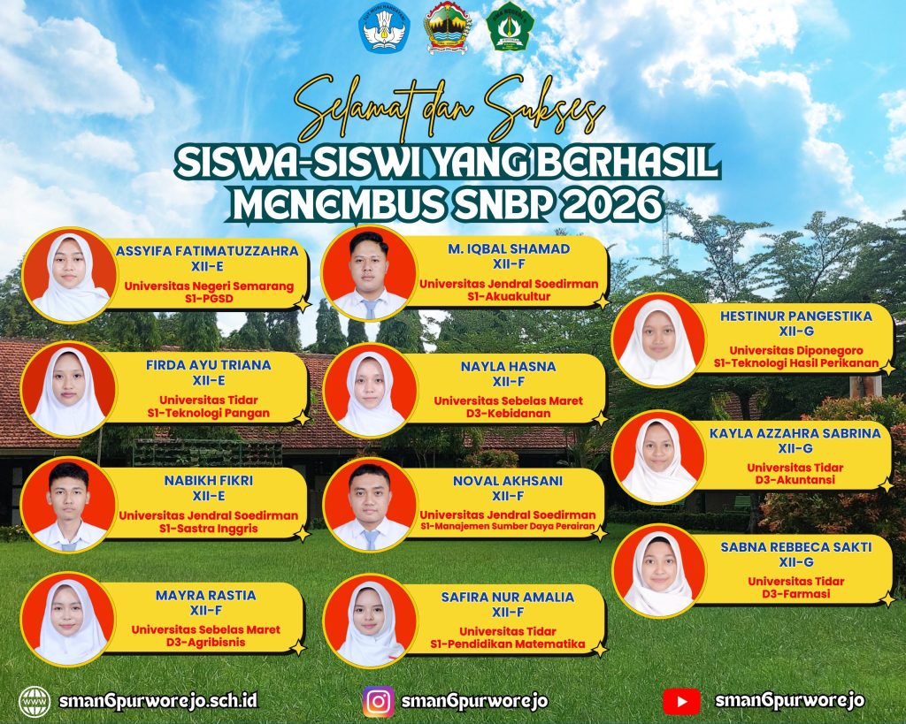 Daftar Nama Siswa-Siswi SMA Negeri 6 Purworejo Yang Berhasil Menembus SNBP Tahun 2026