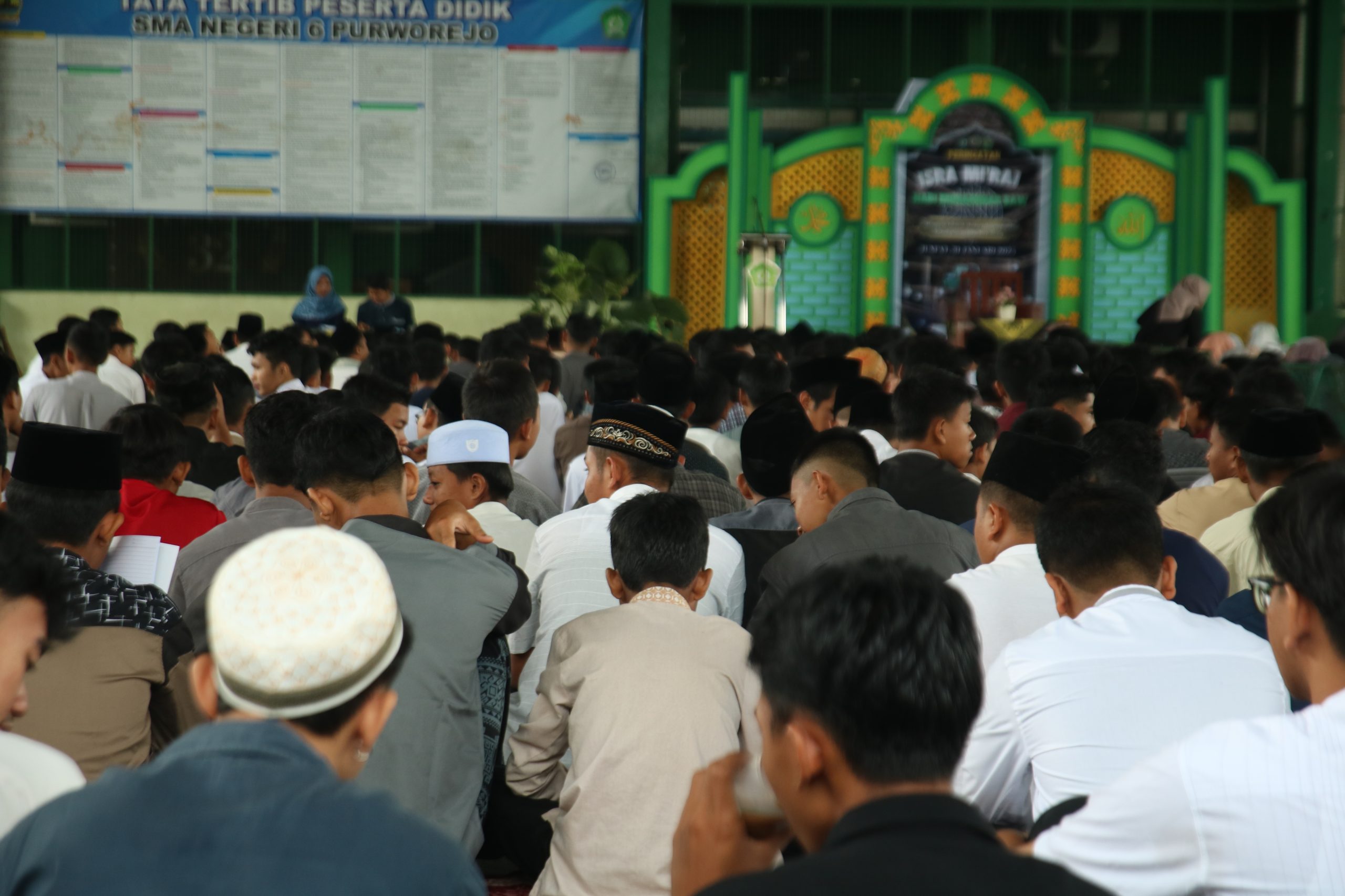 Pada hari Jumat, 31 Januari 2025 SMA Negeri 6 Purworejo menyelenggarakan kegiatan Peringatan Isra’ Mi’raj Nabi Muhammad SAW. Megundang Ustad Deden H.M.S., S.Sos.I., M.Pd., kegiatan peringatan Isra Mi’raj tahun ini mengangkat tema “Menggali Hikmah Sholat Sebagai Pondasi Kehidupan Melalui Isra Mi’raj”. Kegiatan ini diikuti oleh seluruh warga sekolah baik siswa, tenaga pendidik, dan tenaga kependidikan. Melalui kegiatan peringatan Isra Mi’raj ini diharapkan menjadi sebuah siraman rohani bagi seluruh warga sekolah untuk meningkatkan keimanan dan ketaqwaan kepada Allah SWT dan juga sebagai pengingat kita untuk senantiasa mencintai Baginda Nabi Muhammad SAW sebagai junjugan kita, dan semoga kita semua mendapatkan syafaatnya kelak.